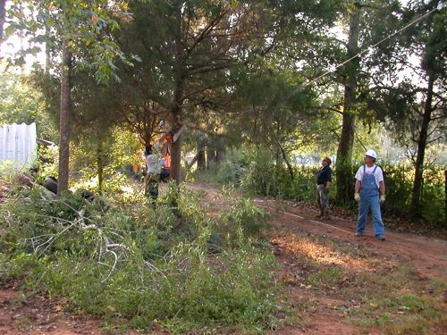 Me cutting the limb off that will become the bannister to the second floor. I thought Bill had cut it but looks like I was the one.