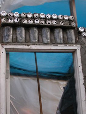 The shelf is a roll of wire that I cut to fit around the bottle tops.