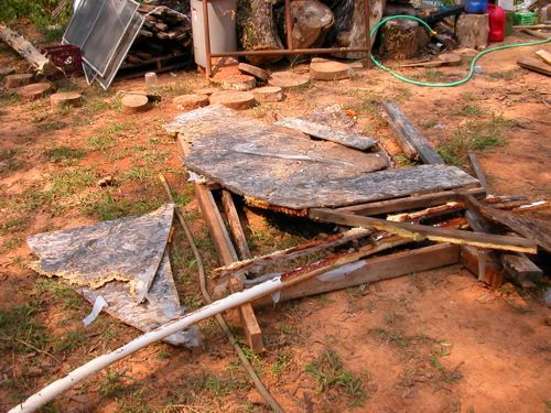 Pieces of the old greenhouse wall. Never thought when I build it as a temp thing that it would last 20 years.