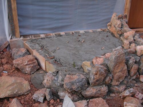 Stove base. No pix of the base but this is beer bottles stood on the neck as closely packed as I could get them then cement mixed and poured over then wire and more cement.