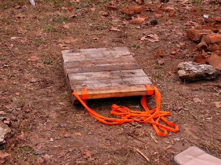 | Built a stone sled this morning. 2x4 runners and assorted widths for the top. Have had a couple of hundred pounds on it and was still able to pull it. Am going to put steel straps on the bottom of the runners to make it easier to pull. | |